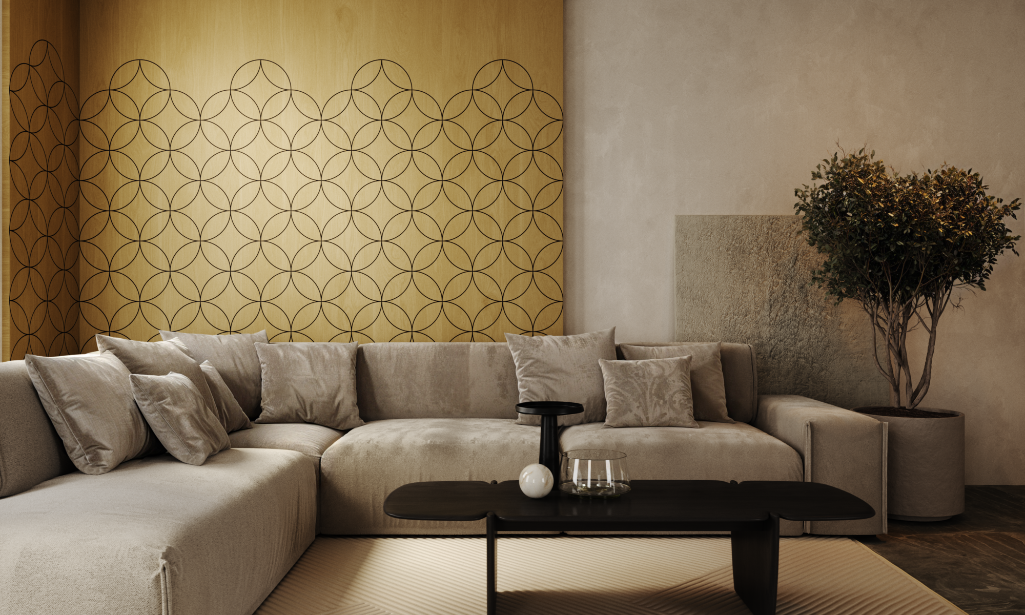 Emeld ki belső tered egyensúlyát és ritmusát a Floréa körmintás falpanellel, amely a klasszikus geometria és a modern design kifinomult ötvözete.