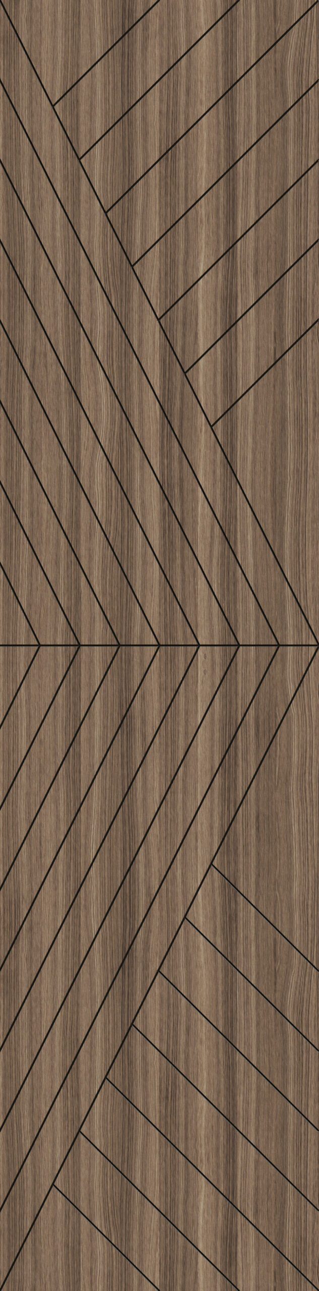 A Kairo falpanel a precízen metszett diagonális vonalakkal mozgást, irányt és ritmust hoz a térbe. A minta geometria metszéspontjai fókuszt adnak az enteriőrnek, miközben megőrzik a természetes furnér melegségét és letisztult japandi stílusát.